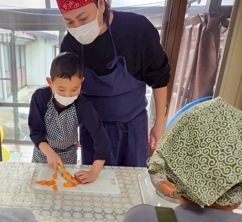 秋晴れの中、心咲の庭で芋煮会を開催しました! 土付きの野菜を自分の手で洗い「ピ…