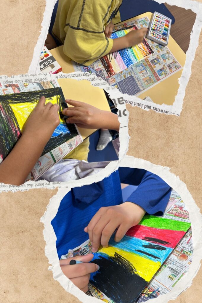 黒いシートを削ると、下から鮮やかな色が現れるこのアートは、子どもたちにとってまるで魔法のよう。