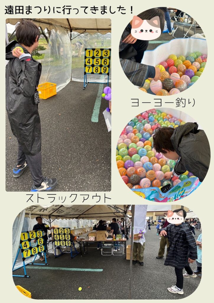 先月ですが、地域で開催された「遠田まつり」に、子どもたちと一緒に参加してきました!