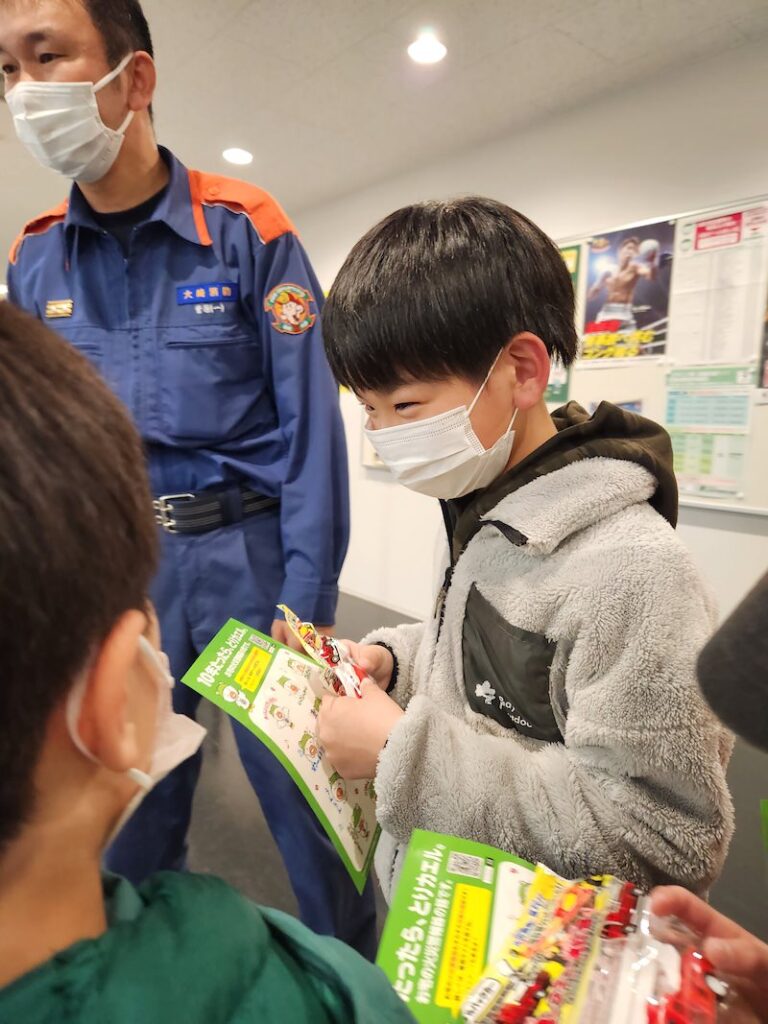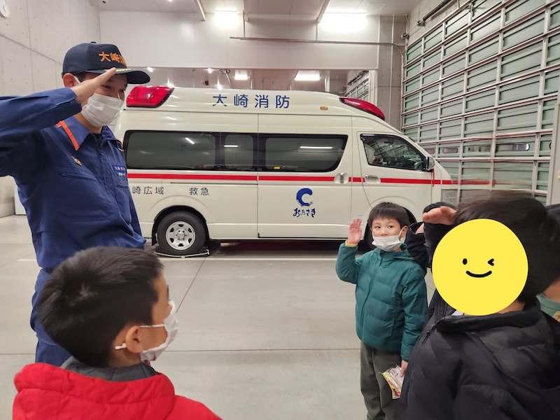 また、子どもたちからは「何時からここに来ているの?」「どれくらいの速さで出動するの?」と質問が自然と出てきており、興味がそのまま言葉になって相手へ向かう様子が印象的です。こうした小さな対話の積み重ねが、子どもたちの「知りたい」や「伝えたい」を確かに育てているようです。