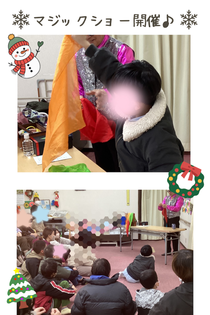 クリスマス、今回はマジックショーとクッキングプログラムを行いました。