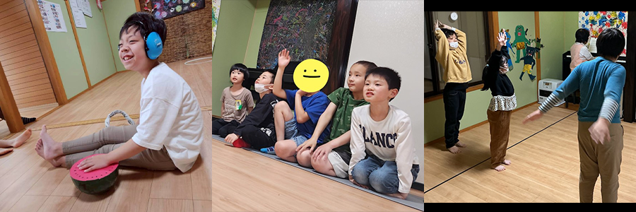 - 音楽を使った活動の中でも、職員や友達の動きを真似したり、息を合わせるなど他者との意思疎通を楽しみながらコミュニケーション能力の向上を図ります。